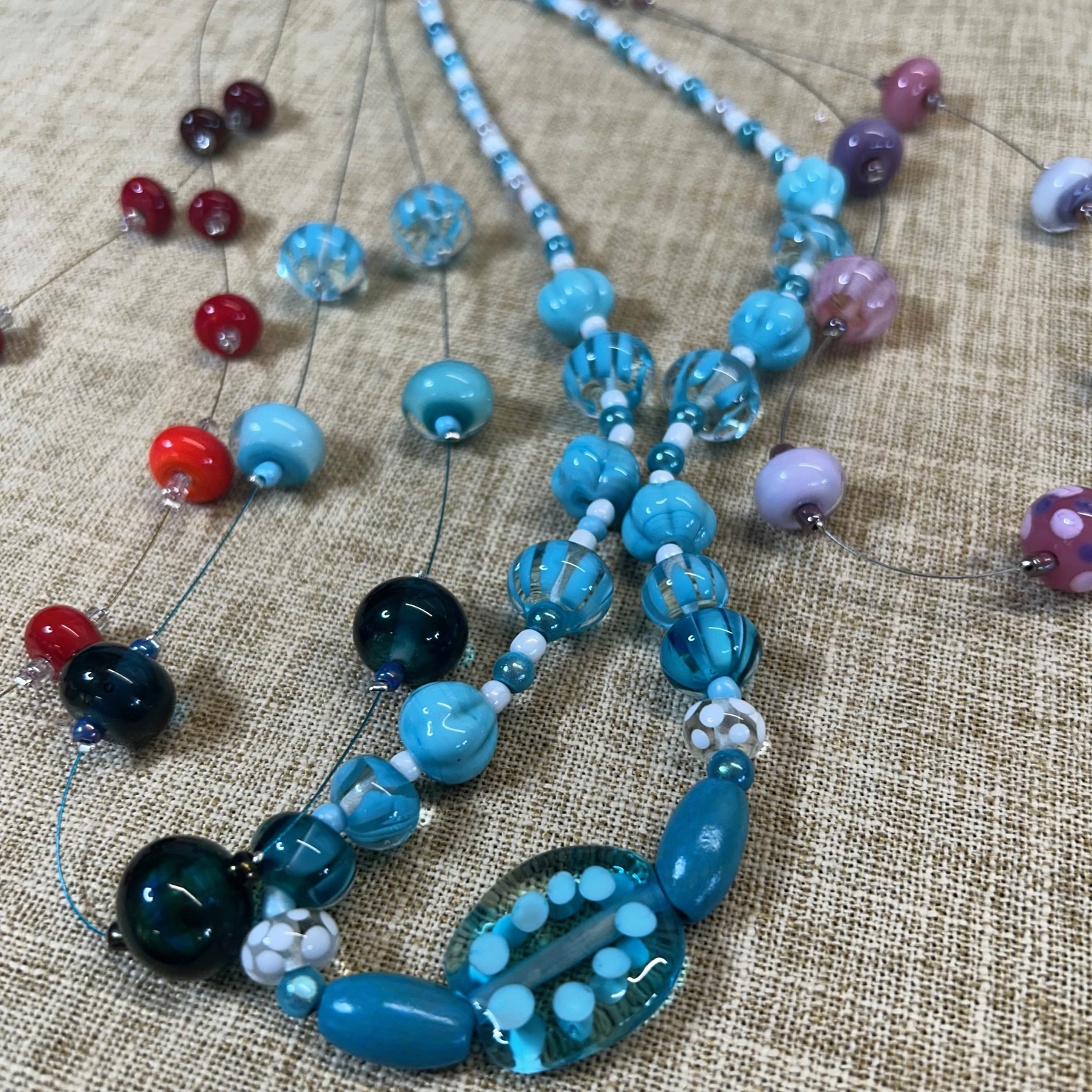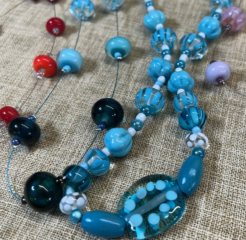 and handmade glass beads.